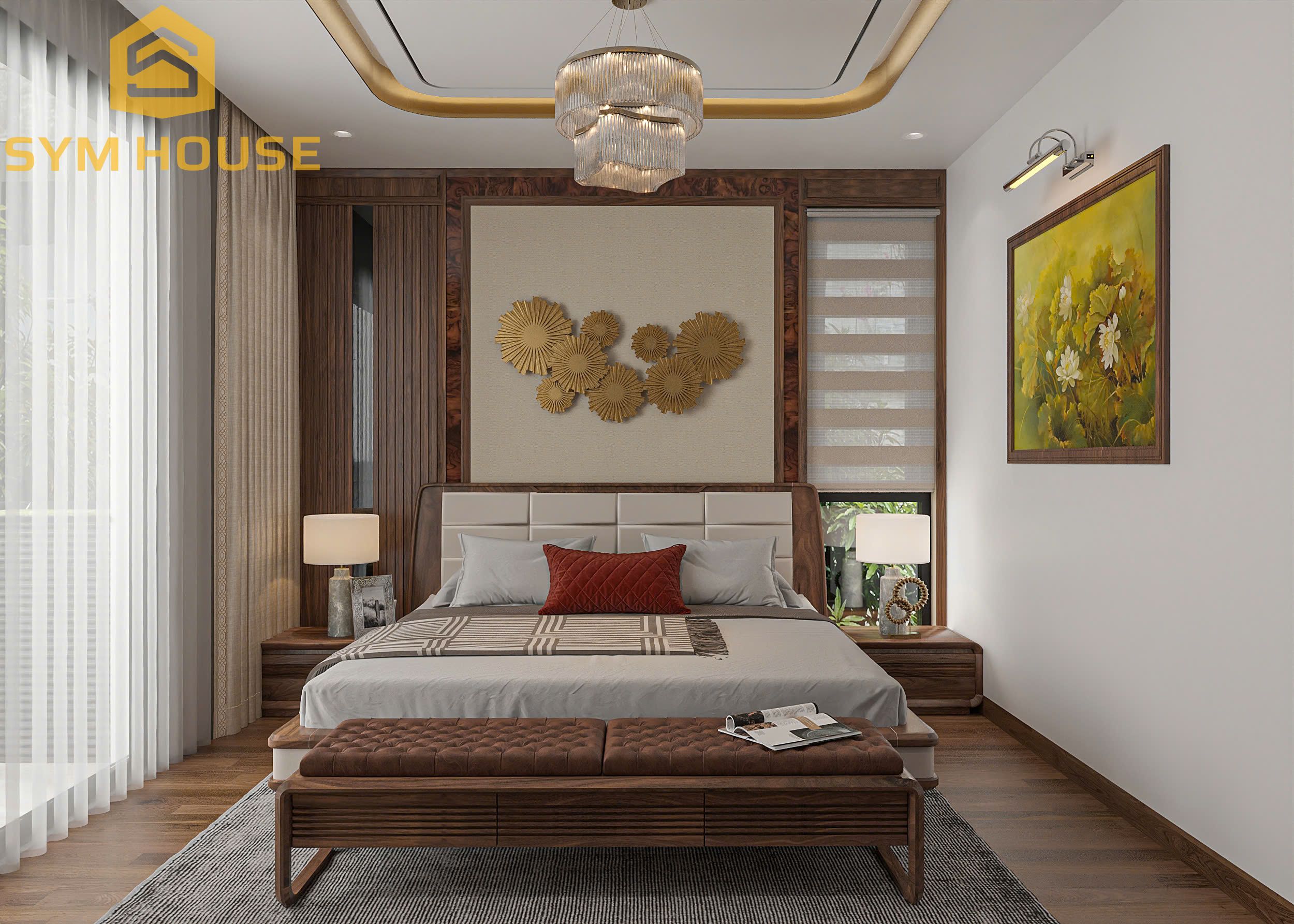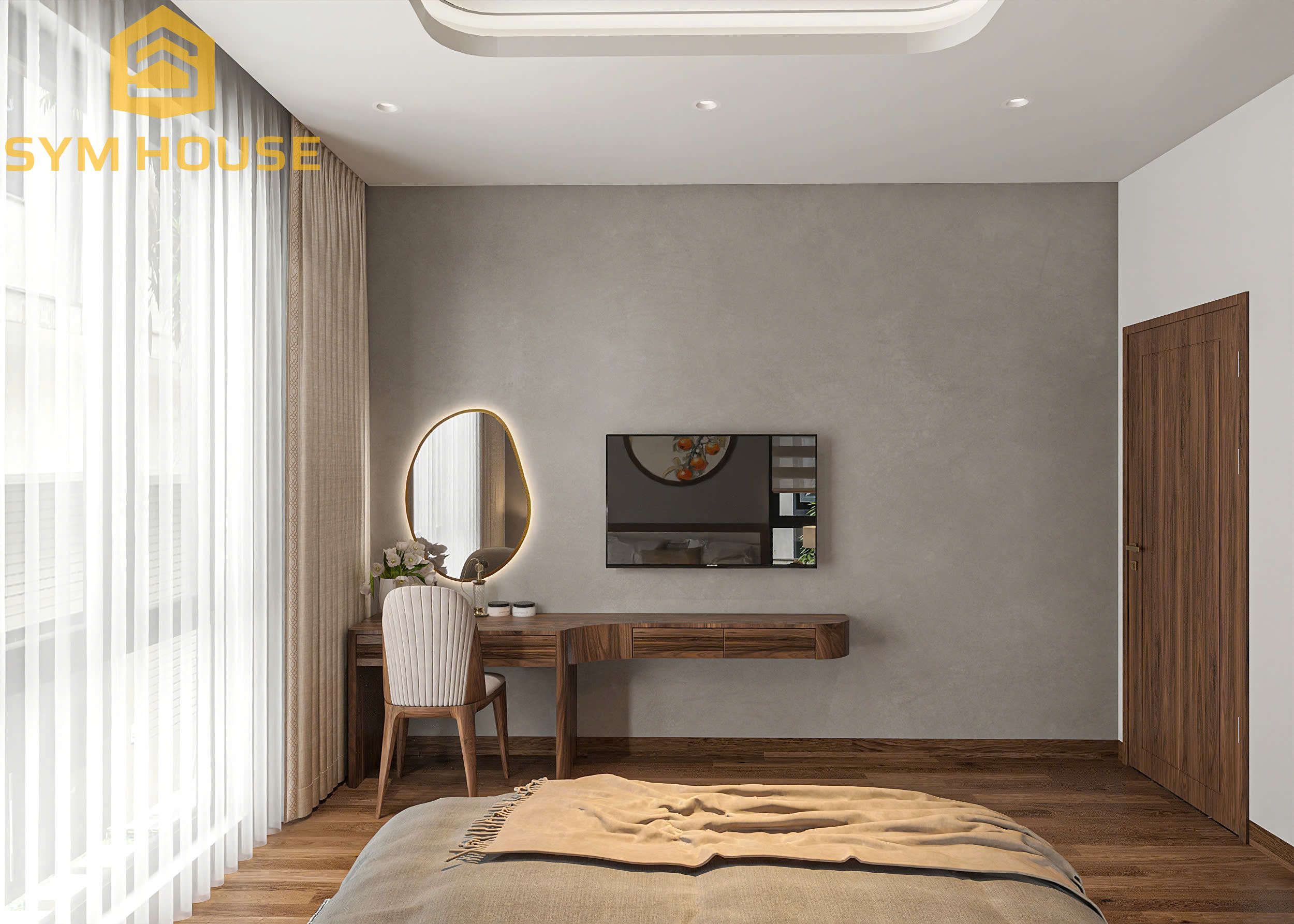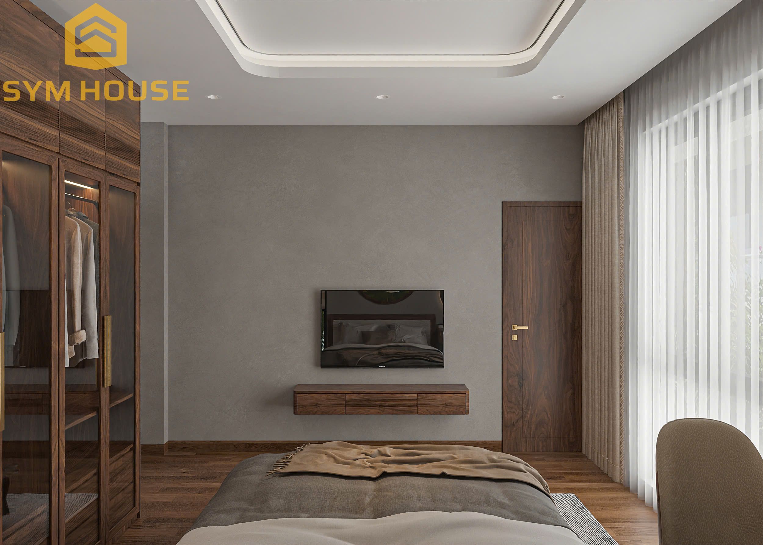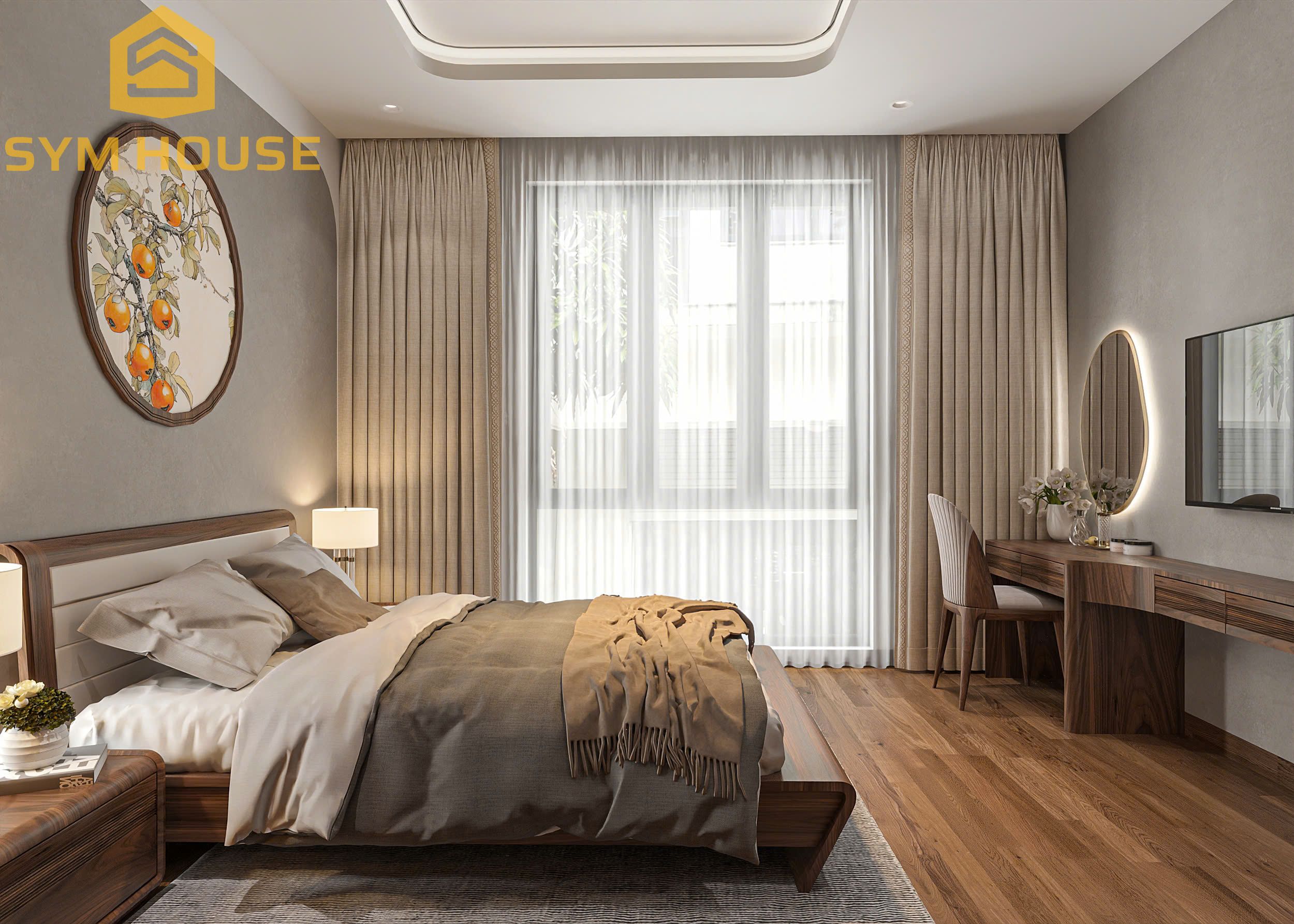 Mỗi phòng ngủ trong biệt thự là một không gian riêng tư được thiết kế tỉ mỉ, thể hiện cá tính và sở thích riêng của từng thành viên trong gia đình. Dưới bàn tay của đội ngũ kiến trúc sư SYM HOUSE, từng chi tiết được chăm chút cẩn thận để mang đến sự hài hòa và tiện nghi. Gam màu nhẹ nhàng kết hợp ánh sáng dịu giúp không gian thêm thư giãn, ấm áp và yên bình.